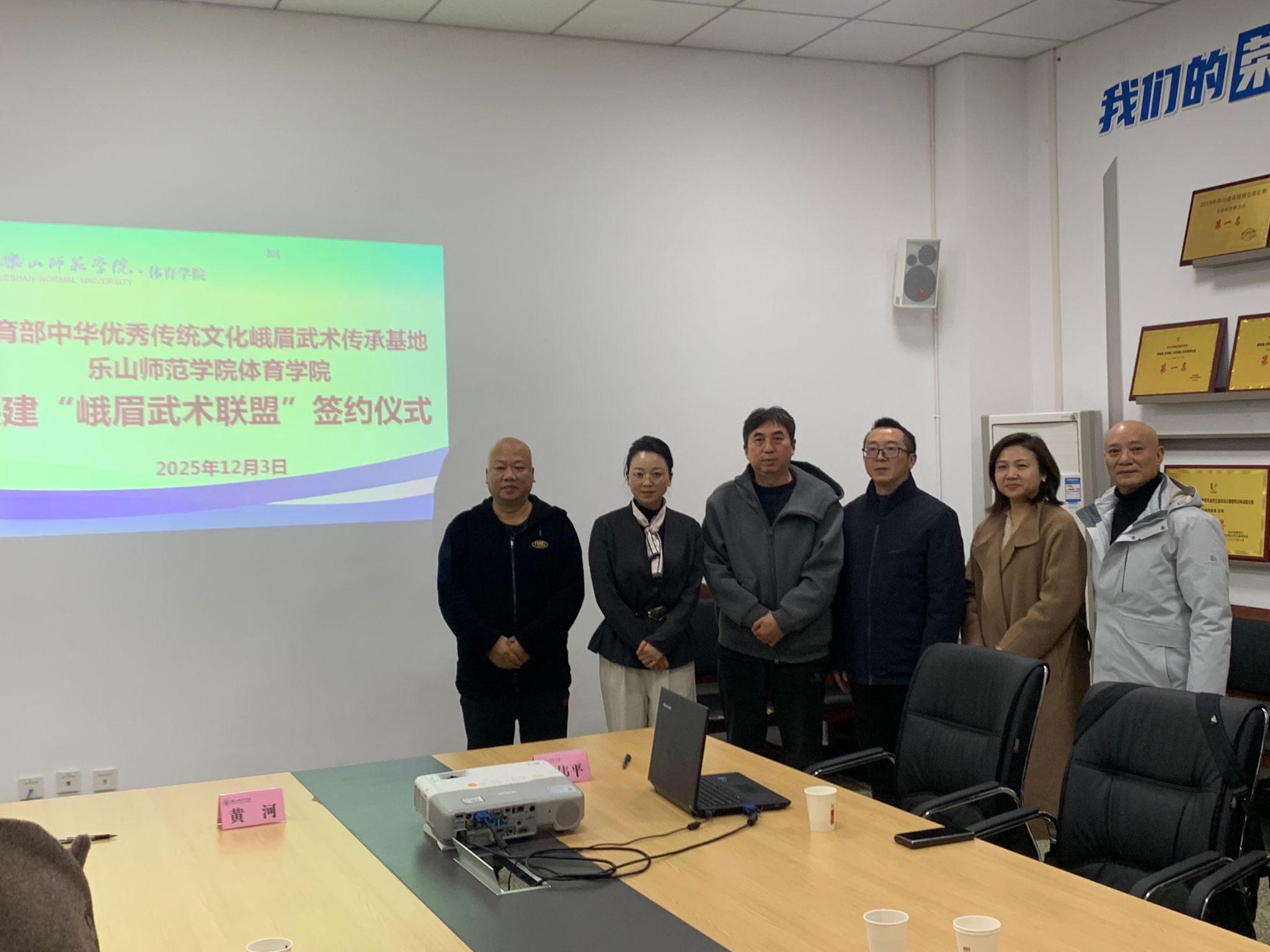 2025年12月3日下午,内江师范学院教育部中华优秀传统文化峨眉武术传承基地与乐山师范学院体育学院共建“峨眉武术合作”签约仪式,在乐山师范学院会议室顺利举行。双方核心团队成员共同出席,开启校际协同传承、创新发展峨眉武术文化的新征程。